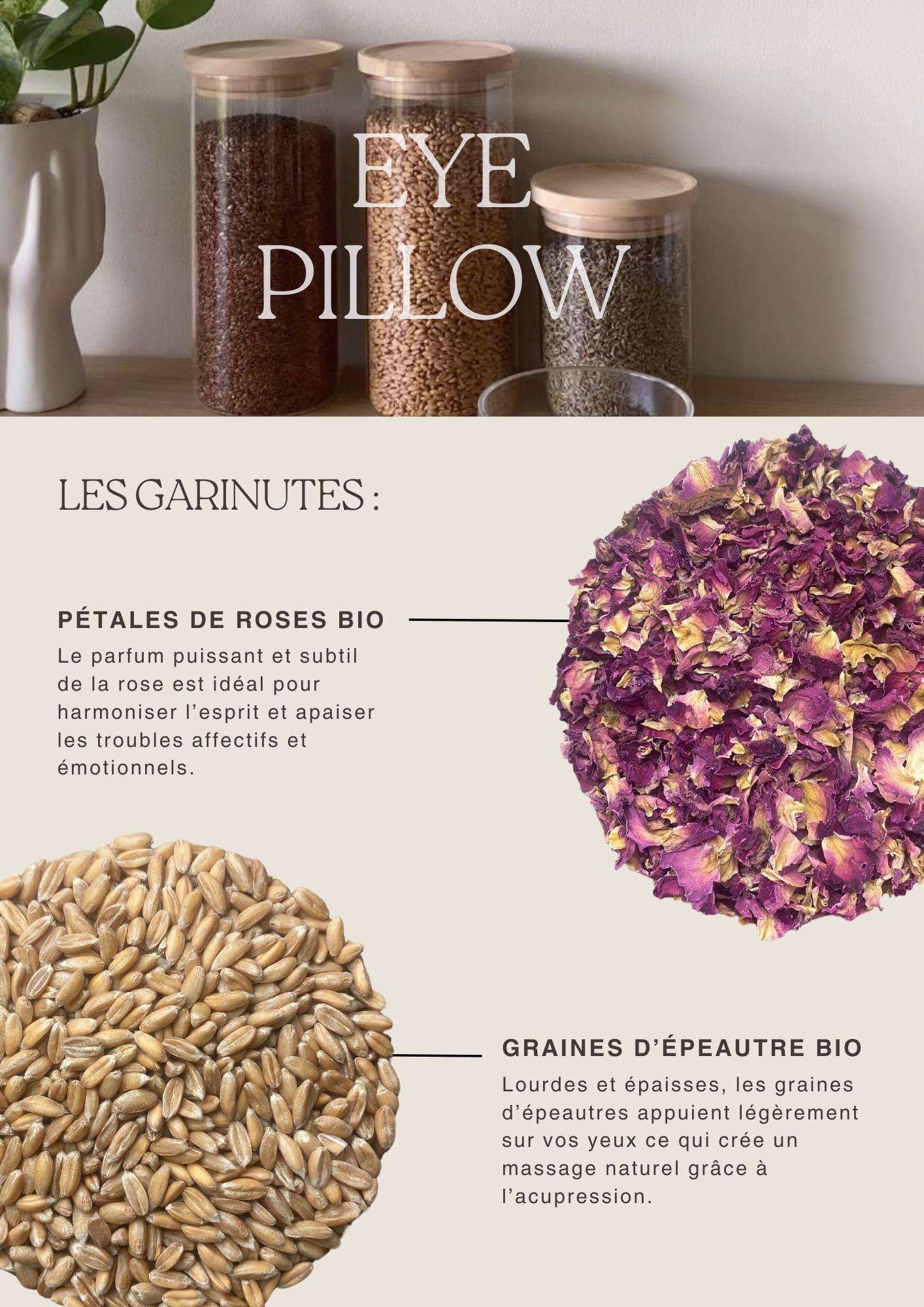 Ce coussin relaxant pour les yeux à la rose et aux graines d’épeautre est un véritable havre de paix pour votre regard.